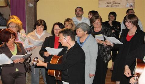 Das Abendprogramm beinhaltete die Verabschiedung des bisherigen Präsidenten des französischen Freundeskreises, Patrick Konieczny, der aus gesundheitlichen Gründen sein Amt im Februar zur Verfügung stellte. Ihm gebührte der Dank von Christine Kaiser, der Vorsitzenden des Freundeskreises Hatzenbühl - Saint Martin Belle Roche, die in ihrer Abschiedsrede sein Engagement beim Ausbau der Partnerschaft und seine Aktivitäten in Bezug auf die Jugendarbeit hervorhob. Als Überraschung und besonderes Dankeschön für die Leistungen von Patrick Konieczny hatten die Hatzenbühler Mitglieder einige Lieder einstudiert, die begeistert applaudiert wurden. Anschließend wünschte sie der neuen Präsidentin, Marie-Martine Dupeuble viel Erfolg bei der Fortführung der Arbeit innerhalb der deutsch-französischen Partnerschaft. Der Abend endete in Super-Stimmung mit Disco und aktuellen Hits und alle ließen sich von der mitreißenden Musik zum Tanzen animieren.